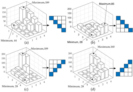 The latter technique is applied to each box. Results are shown in Figure 4. There are two patterns, p1 and p2, p1 are the up and down right diagonals, and p2 are up and down left diagonals.