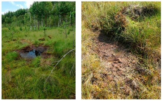 The potential sites (reintroductions) of Drosera intermedia and D. anglica are primarily naturally predisposed sites. Swarms of wild animals (Figure 3), natural depressions, and lake shores were selected as potential sites.