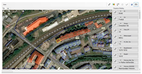 Following the local building surveys, the data records of the individual members of the survey team were merged, GIS-specifically prepared and checked. A plausibility check and supplementation of partially non-visible parameters (especially in the roof areas of the buildings) was performed with high-resolution 3D models of Freital and Pirna, which are available in Google Earth®.