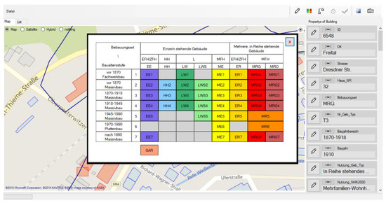 The building stock of the city of Freital was documented on a microscale level using a coordinated parameter list, which was implemented in an updated version of the EQUIP building survey tool developed by EDAC (cf. [31,32]). The EQUIP (elaboration, qualification and interpretation) tool supports the documentation of building characteristics for subsequent detailed vulnerability analyses and damage modelling.