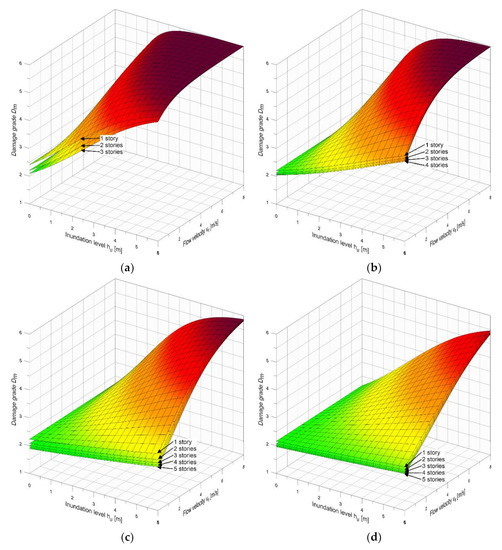 Furthermore, considering the experience of tsunami damage [34], damage grade D6 (cf. Table 3) was introduced in [24] in order to differentiate these extreme damage cases from the grade of common collapse (D5).