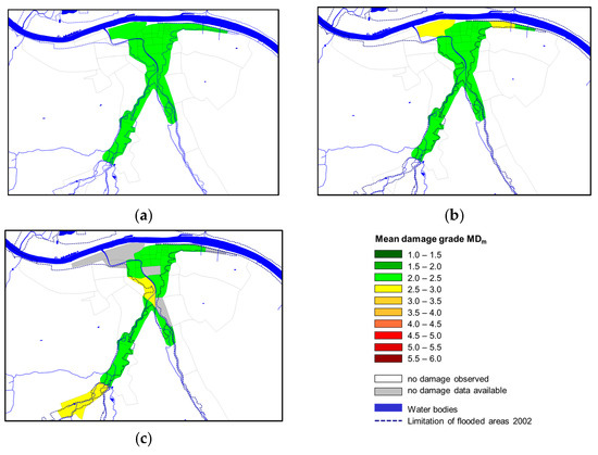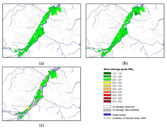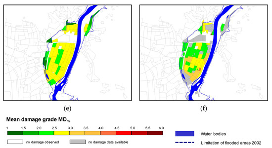 The proposed approaches were validated by evaluating the damage prognosis in comparison to the damage that was actually observed after the 2002 flood. Hydraulic simulations of the 2002 flood event in the study areas are required to determine the impact parameters (inundation levels and flow velocities) on the affected buildings.