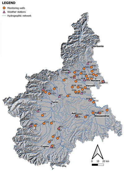 - De Luca, D.A.; Lasagna, M.; Debernardi, L. Hydrogeology of the Western Po Plain (Piedmont, NW Italy). J. Maps 2020, 16, 265–273. [Google Scholar] [CrossRef]