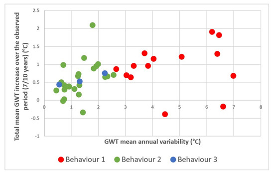 | Well | Theil-Sen Trend Line Slope—GWT Mean (°C/Month) | Theil-Sen Trend Line Slope—GWT Max (°C/Month) | Theil-Sen Trend Line Slope—GWT Min (°C/Month) | Total GWT Mean Increase over the Observed Period (°C) | Total GWT Max Increase over the Observed Period (°C) | Total GWT Min Increase over the Observed Period (°C) |