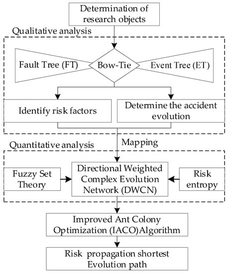 The proposed methodology in this study is illustrated in Figure 1, in which the combination of BT, DWCN, and IACO algorithms leads to a comprehensive model for evaluating the risk propagation capacity of hazardous events.