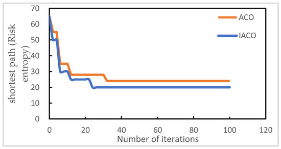 - A shortest path planning algorithm based on risk graph theory is proposed, i.e., an IACO algorithm, which is extended to solve the shortest path problem with uncertainty.