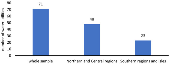 Further limitations of this study are given by the size of sample and the utilization of data relative to one single year to perform the efficiency analysis. Both limitations were due to the availability of public data. While on the one hand it was easy to collect yearly financial data from public sources for water utilities that were incorporated as enterprises, on the other hand, when the water services were provided by the municipalities themselves, financial data relative to the management of service were not accessible []. Similarly, updated figures relative to the infrastructure capacity were often unavailable.