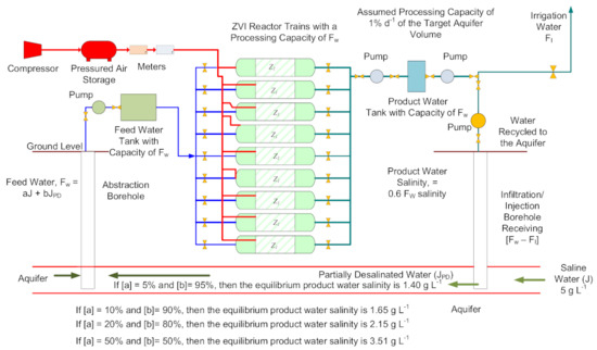 - Antia, D.D.J. ZVI (Fe0) desalination: Catalytic partial desalination of saline aquifers. Appl. Water Sci. 2018, 8, 71. [Google Scholar] [CrossRef]