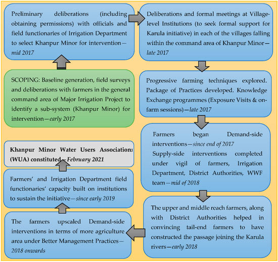 Whilst the demand-side and supply-side interventions were implemented side-by-side, however there is a degree of complementarity due to which both these aspects proved to be supportive to the Karula River initiative. A step-by-step process chart illustrating the implementation of activities under both types of interventions is available as Appendix D.