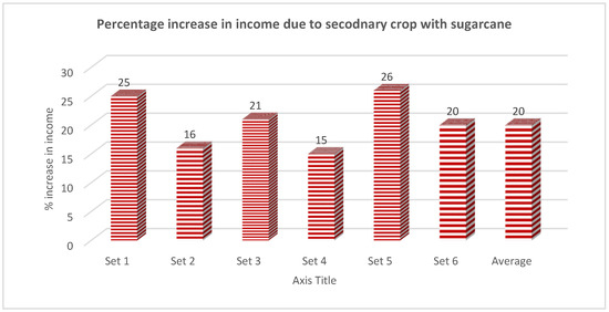 The percentage increase in income due to secondary crop with sugarcane.