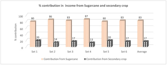 The percentage contribution of sugarcane and secondary crops in total income.
