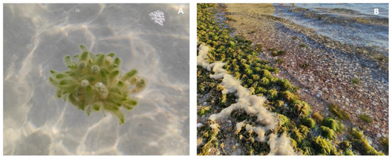 In the eastern localities, some clumps of Batophora were floating, being carried away by the waves and currents, and some of them were returning to the sea bottom or found as debris accumulated on the beach (Figure 3).