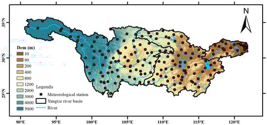 Topographic map of the Yangtze River basin (Dem refers to Digital Elevation Model). The sub-basins from left to right are the upper, middle, and lower reaches, respectively.