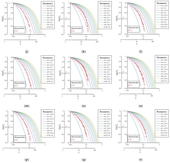 Matching diagram for different test conditions in the test well in the case of . (a) ; (b) ; (c) ; (d) ; (e) ; (f) ; (g) ; (h) ; (i) ; (j) ; (k) ; (l) ; (m) ; (n) ; (o) ; (p) ; (q) ; (r) .