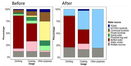 Change of water sources before and after water provision by the KOTAKU program, (n = 67).