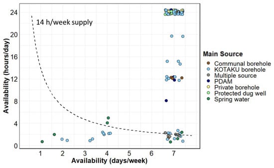 Supply frequency and hours of different water sources (The dashed line indicates supply hours of 14 h/week).