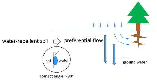 - Mao, J.; Nierop, K.G.J.; Dekker, S.C.; Dekker, L.W.; Chen, B. Understanding the mechanisms of soil water repellency from nanoscale to ecosystem scale: A review. J. Soils Sediments 2019, 19, 171–185. [Google Scholar] [CrossRef]
