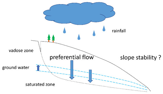 - Kukemilks, K.; Wagner, J.F.; Saks, T.; Brunner, P. Conceptualization of preferential flow for hillslope stability assessment. Hydrogeol. J. 2018, 26, 439–450. [Google Scholar] [CrossRef]