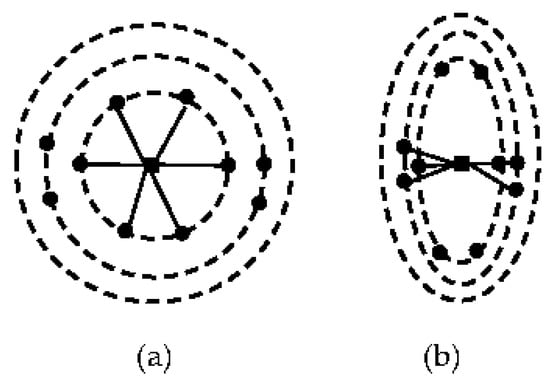 As shown in Figure 5, the distance adjustment parameter can change the nearest neighbor point. Figure 5a shows the spatial neighbor point selected in the homogeneous space, and Figure 5b shows the spatial neighbor point selected when considering anisotropy.