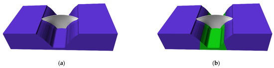 Two different foundation configurations were defined (Figure 2): (a) a homogeneous foundation, in which the two sectors of the entire foundation, the dam concrete and the foundation, have a similar mechanical behavior; and (b) a configuration with different stiffnesses in the dam abutments and the riverbed—i.e., the mechanical characteristics of the abutments are different from those of the soil in a riverbed. Therefore, there are three sectors in this case: the dam concrete, the riverbed, and the abutments. The two abutments have the same resistant parameters, but they are different from those of the riverbed sector.
