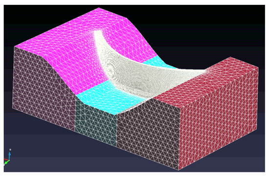 The finite element model of the dam had a total of 68,477 nodes and 363,756 elements (Figure 3). An unstructured mesh was used.