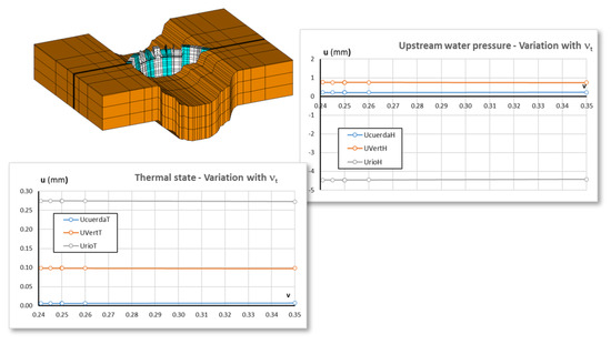 Study of the sensitivity of dam movement to changes in the Poisson ratio.
