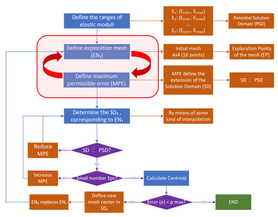 Examples of inverse analysis models based on neural networks can be found in Fedele et al. [13,14], Yu et al. [15], and Mata et al. [16].