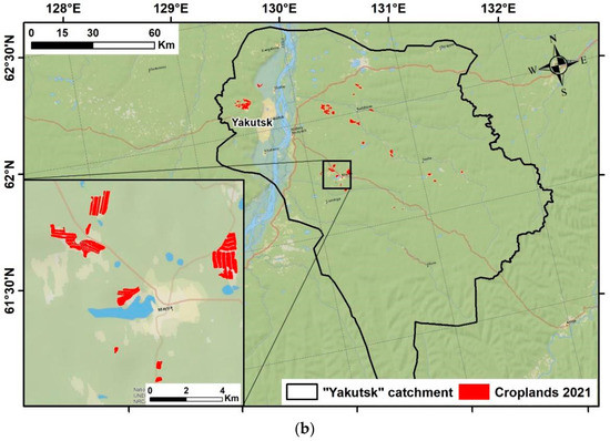 The model is still rarely used within the territory of Russia. It can be noted in the traditional agricultural regions in the south of the European part of Russia, within the Belgorod region [31], and the east Russian Plain [36]. This model is rarely used in the predominantly non-agricultural territories of Siberia and the Lena River catchment.