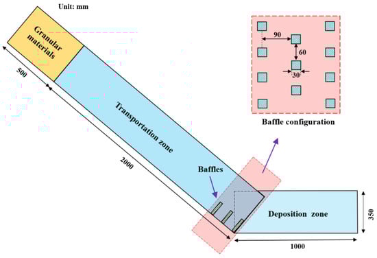 - Zhang, B.; Huang, Y.; Liu, J. Micro-mechanism and efficiency of baffle structure in deceleration of granular flows. Acta Geotech. 2021, 16, 3667–3688. [Google Scholar] [CrossRef]