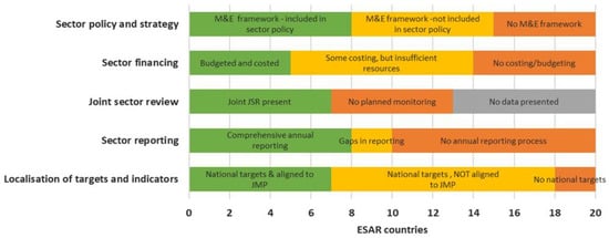 WASH monitoring scoring for ESAR countries’ the enabling environment. Adapted from Harris and Pearce [30].