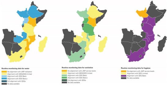 Availability of data in routine monitoring systems, and extent of alignment with JMP indicators for access to drinking water services, access to sanitation services and access to hygiene [30].