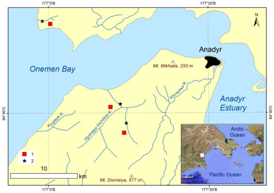 - Ignatenko, I.V.; Paperno, I.M.; Pavlov, B.A.; Zamoshch, M.N.; Skorodumov, I.N. Geofizika i antropogennye izmeneniya landshaftov Chukotki (Geophysics and Anthropogenic Changes in Chukotka Landscapes); Nauka: Moscow, Russia, 1987; 271p. (In Russian) [Google Scholar]