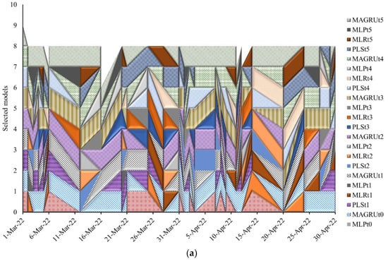 Results of the (a) selection of different training models in time series (b) number of counts of selected models in training period.