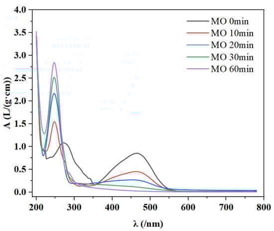 Absorbance spectra of MO solution over the reaction time.
