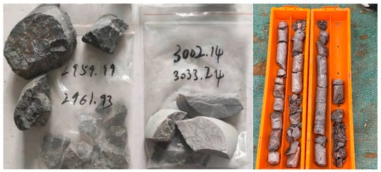The rock used in the experiment was gray–white dolomite, which was collected from well D22 in the Gaoyuzhuang Formation reservoir in the Xiong’an New Area (Figure 2). The collection depth was 2000–3500 m.