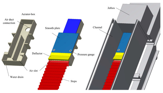 Figure 2. Components and placement of the aerator at the head of the stepped channel.