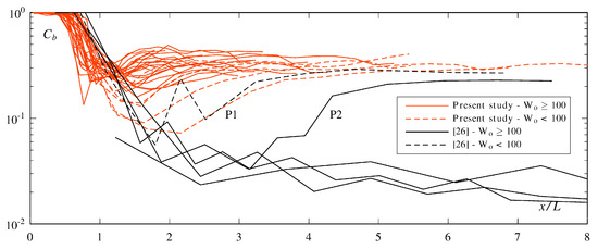 Based on the development of Ca and Cb presented in [38], a length of at least X = (xxi)/hc ≥ 20 appeared to be required to reach quasi-uniform flow conditions.