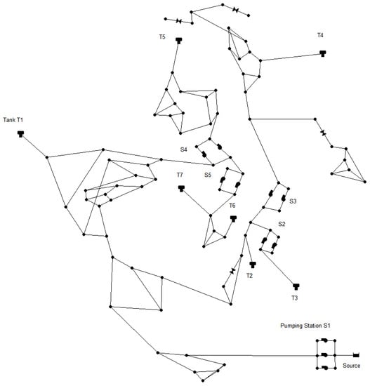 - Rossman, L.A.; Woo, H.; Tryby, M.; Shang, F.; Janke, R.; Haxton, T. EPANET 2.2 User Manual; U.S. Environmental Protection Agency: Cincinnati, OH, USA, 2020.