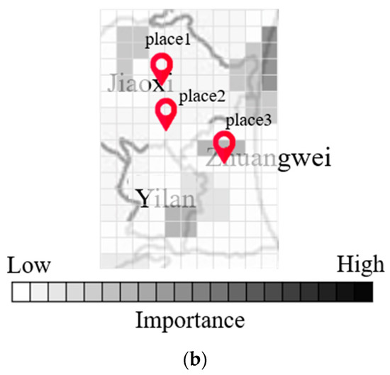 From a qualitative perspective, we sought to determine whether the key grid cells indeed influenced flood height predictions at the target observation site. The two target areas of Yilan and Yunlin are discussed separately.