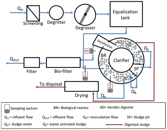 Schematic representation of the Marineo WWTP.