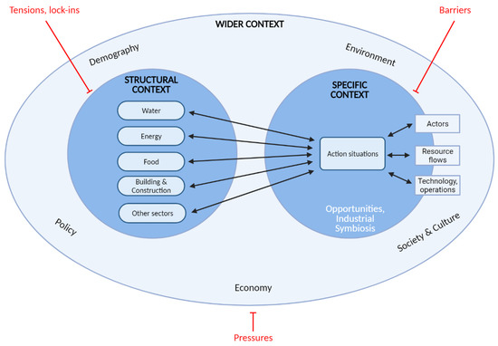 - Context-specific deals with assessing the factors directly related to the case studies, such as the geographical location of the systems and their histories, which consist of a previous decision-making and framing process. At this level, the aspects to be evaluated are previous decisions and case-specific circumstances.