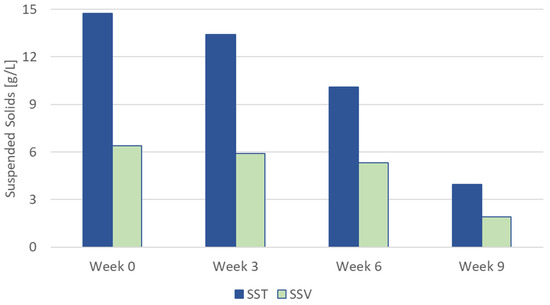 In Table 3 the results of the sludge characterization are reported. The results highlight the variability of the sludge features, especially referring to the suspended solids concentration (Figure 14), probably due to the manual management of sludge wasting operations from the sludge recycle line. Indeed, at present, the sludge discharge is activated manually by the plant operators without a fixed time schedule or discharge duration.