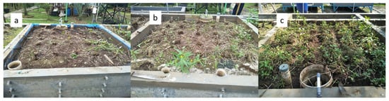 Weed collection after harvesting in each regime: (a) CFI; (b) MFI; (c) WSI.