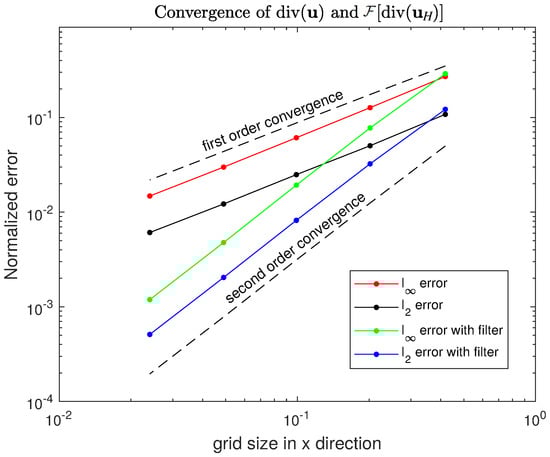 7] showed the possible influence of the divergence error in the pressure and velocity approximation by considering the decaying Taylor vortex case. Checkerboard errors are observed in the divergence approximation and further influence the pressure field. Therefore, a filtered method is needed to eliminate the checkerboard pattern and decrease the horizontal divergence values.