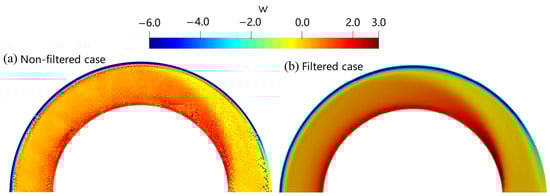 The laminar curved channel flow is a good case to demonstrate the filter’s performance because the horizontal divergence noise should be mitigated to resolve secondary flow features [