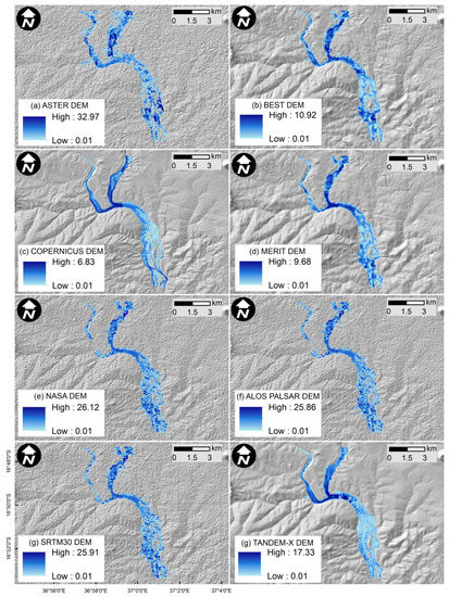41]; although, other DEMs have also been used, such as the MERIT, TanDEM-X, or EU-DEM [