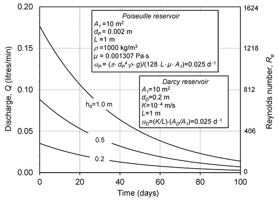 Figure 2 shows an example of the discharge-time plot using the Darcy and the Poiseuille laws with the same recession coefficient (