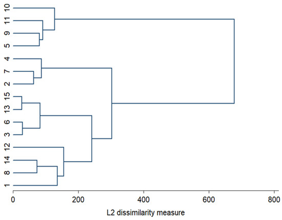 Agglomerated hierarchical cluster analysis sorted sampling stations according to their magnitude. It clustered the sampling sites using the dendrogram approach. Four clusters were found to have identical characteristics each. Figure 9 elaborately depicts that S5, S9, S11, and S10 have different features within their cluster. S1, S8, S12, and S14 have comparatively lower values within the cluster. This indicates that the cluster of sampling stations had lower pollution. Cluster analysis implies the degree of pollution over the sampling stations.