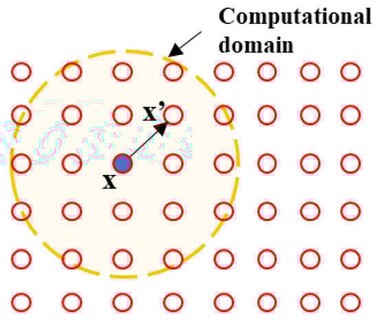 As a continuum-scale mesh-free method, the SPH method discretizes the computational domain using a series of discrete particles conveying all of the field variables. The specific steps of the SPH method are a kernel approximation and particle approximation. The field function f(xi) and its derivative at the position xi can be rewritten as: