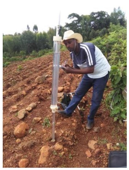 - Lee, D.M.; Elrick, D.E.; Reynolds, W.D.; Clothier, B.E. A Comparison of three field methods for measuring saturated hydraulic conductivity. Can. J. Soil Sci. 1985, 65, 563–573. [Google Scholar] [CrossRef]